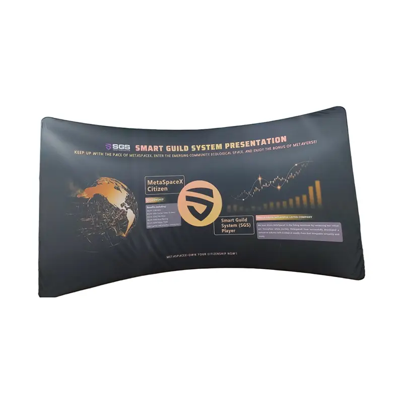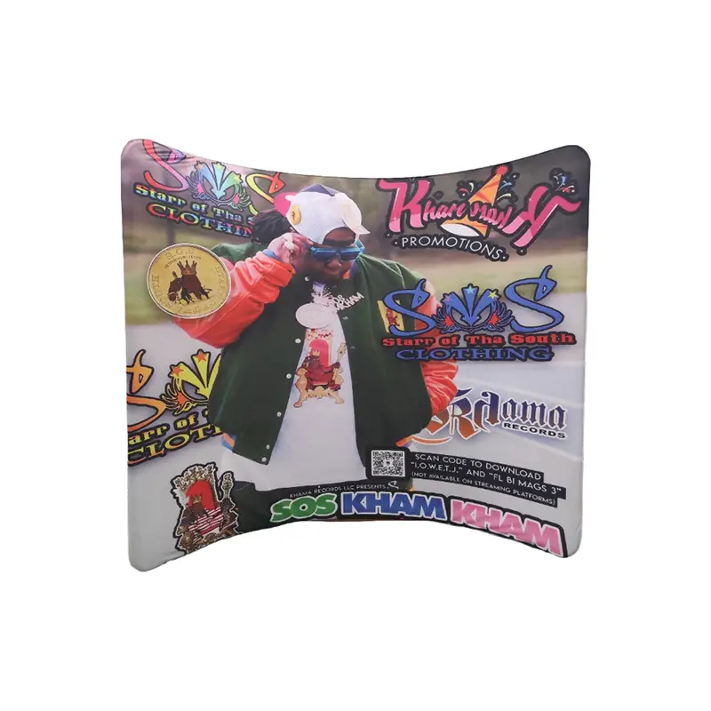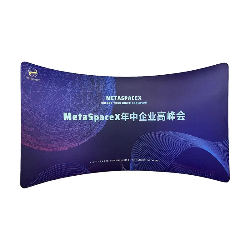 Cadrul de fundal curbat este realizat dintr-un cadru puternic, dar ușor din aliaj de aluminiu și țesătură tricotată elastică imprimată prin sublimare de înaltă definiție, acest suport curbat în arc oferă atât durabilitate, cât și imagini de top. Țesătura prezintă culori strălucitoare, rezistente la zgârieturi, care dau viață modelelor complicate cu o mare claritate. Structura sa curbată creează un afișaj fără sudură, fără șifon, iar ansamblul fără instrumente vă permite să configurați un fundal profesional în doar câteva minute.