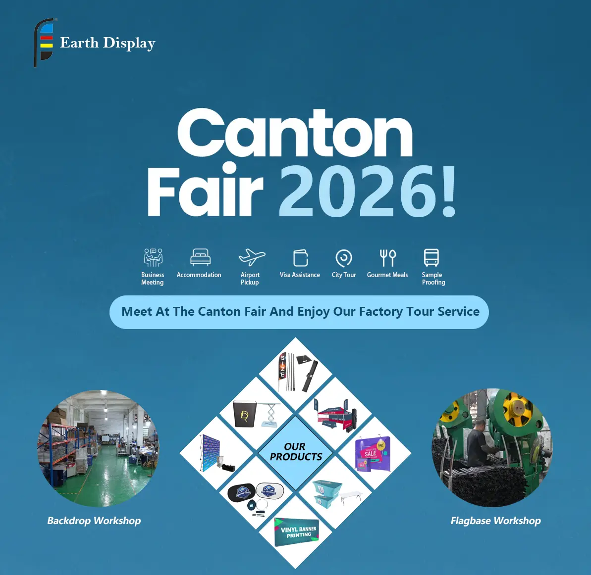 Târgul din Canton din 2026 se apropie, iar noi cei de la Earth Display sperăm cu adevărat să vă vedem acolo. Facem steaguri cu pene, fundaluri pop-up, baze pentru steaguri, bannere personalizate de vinil – practic orice pentru expoziții și reclame – de peste zece ani. De data aceasta, în loc să vorbim doar online, vrem să vă arătăm ce facem, față în față.
