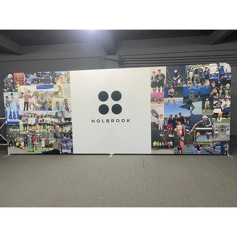 Cadru dreptunghiular pentru fundal, fabricat din aliaj de aluminiu de top pentru cadru, acest suport pentru fundal este dur, dar ușor, astfel încât să îl puteți muta fără probleme și să aveți încredere că va rămâne constant în timpul evenimentelor dvs. Grafica folosește imprimare digitală de ultimă generație pe material premium (sau vinil), astfel încât culorile pop și detaliile sunt clare, la fel ca acel colaj sport pe care îl vedeți aici. Montarea este de asemenea simplă - nu sunt necesare instrumente. Puneți împreună piesele cadrului, atașați graficul și gata. Indiferent dacă doriți un logo al mărcii, un mesaj promoțional sau un colaj foto plin de viață, acest stand vă face ideea să arate grozav.